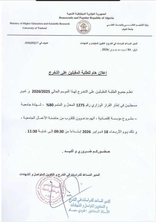 إعلان هام للطلبة المقبلين على التخرج